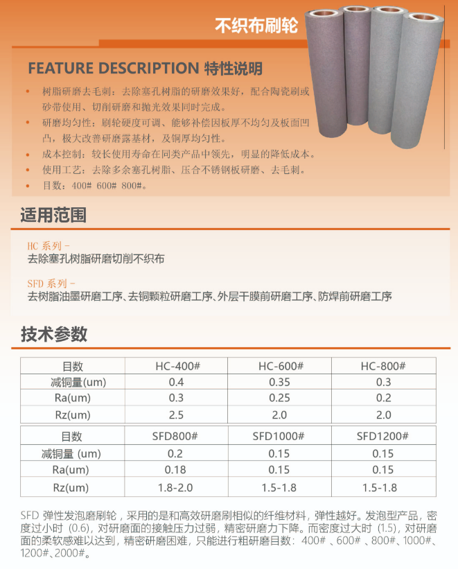 HC系列- 去除塞孔樹脂研磨切削不織布。